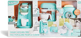 JUST LIKE THE REAL ONES: Set of three realistic toy kitchen appliances with sleek design and professional appearance. ENDLESS FUN: Pretend kitchen play with Coffee Maker, Toaster and Stand Mixer! Fill the reservoir with water, insert pod and push the button to "brew" coffee! Coffee maker makes realistic brewing sounds. TIME FOR BREAKFAST: Push the lever and set the timer to "toast" bread. Bread will pop up out of the toaster! LET THE BAKING BEGIN: Stand Mixer features tilt-head design for placing and removing the bowl from the stand. Turn the mixer on to watch the whisks rotate! Product Specifications: Package contains Trendy Kitchen Trio with Coffee Maker, Toaster and Stand Mixer. Requires 4 "AAA" batteries, not included.