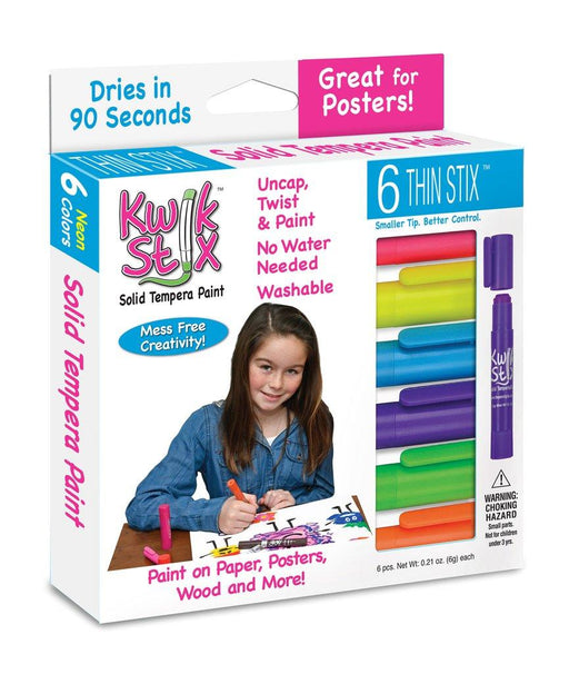 6 neon thin stix solid tempera paint, indoor activitiesNow introducing Kwik Stix Thin Stix! Paint with finer detail using these new solid tempera p...