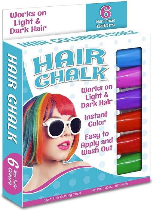 Hair Stix Coloring Chalk is a great way to add beautiful, vibrant colors to your hair! The chalk applies instant color to dry hair and works on both light and dark hair shades. The hair chalk results in a soft color that is easy to brush and style after applying. The stick is designed to fit perfectly into your hand to make for a super easy application. Includes 6 colors.