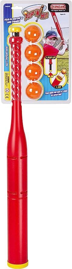EASY-TO-USE TRAINING TOY: With the Duncan Toys Pop 'N Hit Bat, you can easily pitch to yourself or your friends! Simply PULL, & POP - Balls pop...