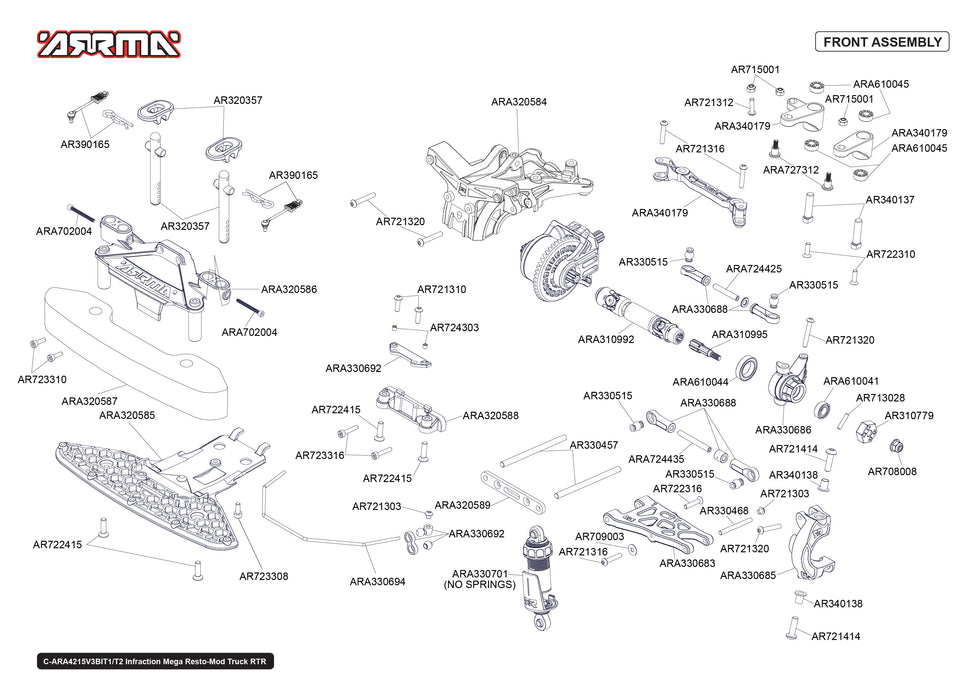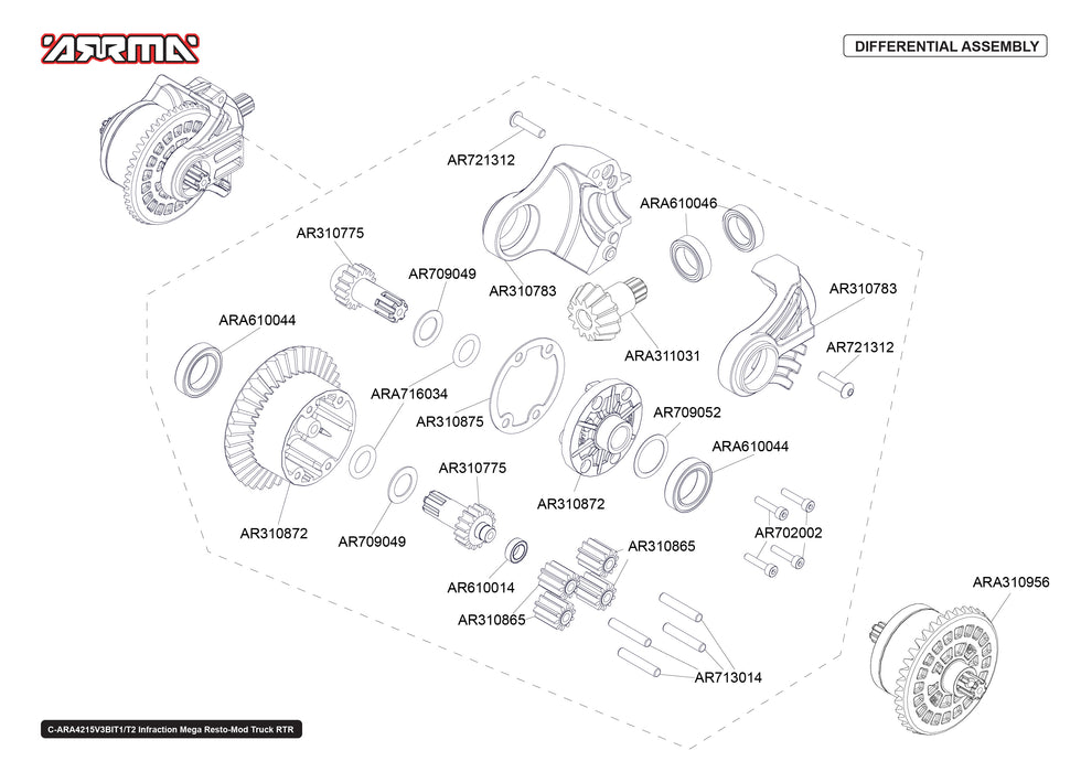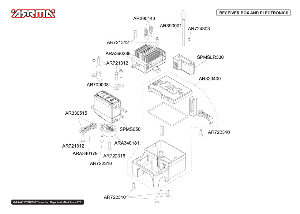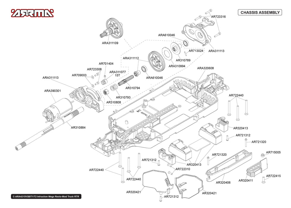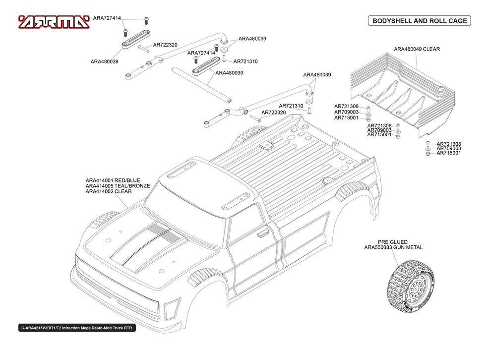Arrma Infraction Mega Resto-Mod 4x4 4WD Parts Exploded View (4215V3T2)