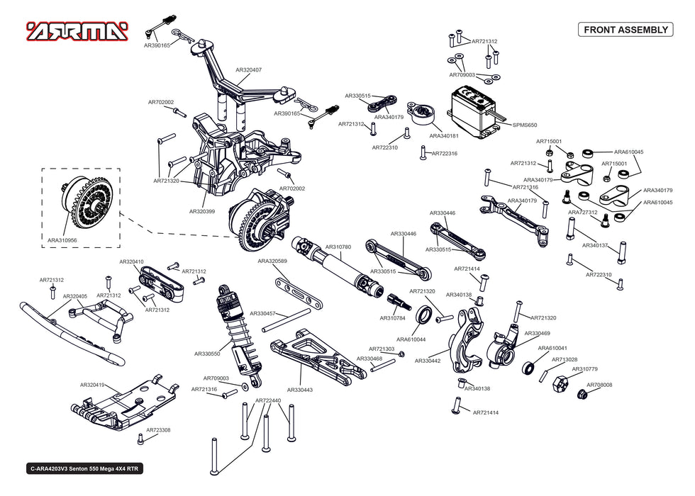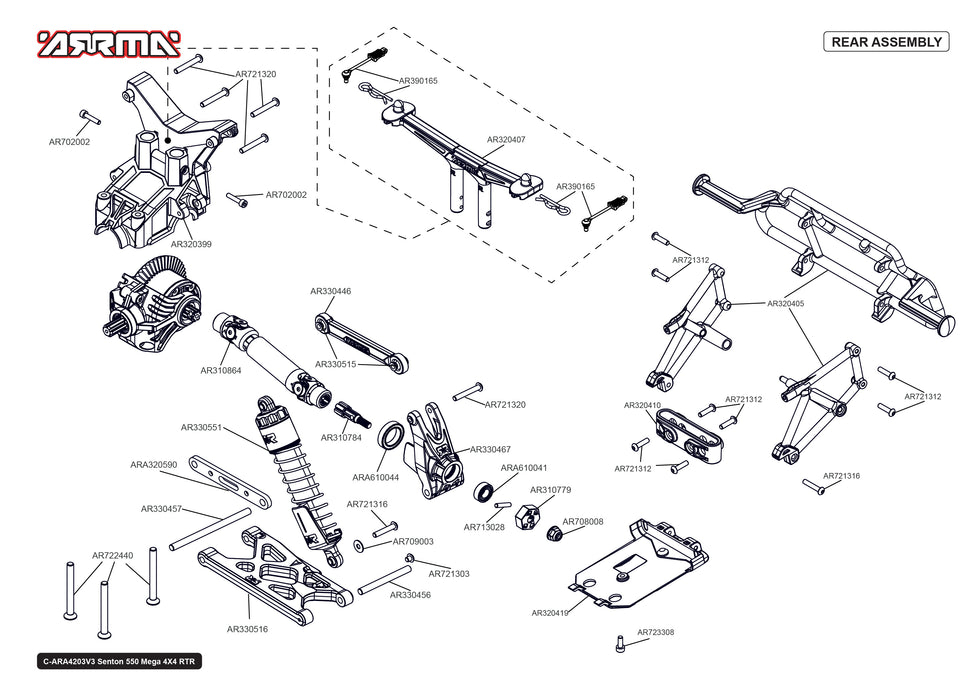 Arrma Senton 4x4 Mega 4WD Short Course Parts Exploded View (4203V3T1)