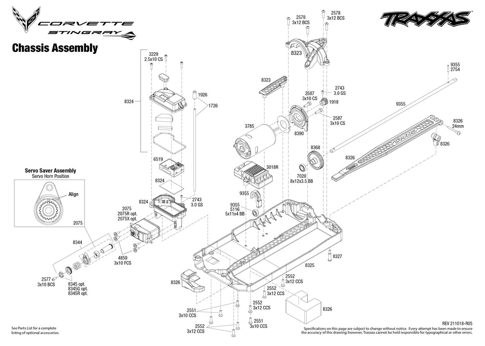 Traxxas Chevrolet Corvette Stingray Parts Exploded View (93054-4)