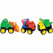 Create your own construction site with these durable, plastic trucks. Take these sturdy little trucks to the beach, in the car or just use them at home, they are convenient for any type of play. Includes 1 cement mixer, 1 bulldozer and 1 dump truck – all with real working parts! For ages 18m and up.