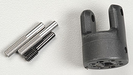 This is the Brake Yoke w/Pins for the Traxxas Revo. It is use on the Center/Front Driveshaft Assembly. FEATURES: Plastic Brake Yoke Steel Brake Pins(each knurled on one end) Steel Screw Pins INCLUDES: One Brake Yoke Two Brake Pins One Screw Pin REQUIRES: Assembly to the vehicle SPECS: Brake Yoke Outer Diameter: 18.5mm (.73") Brake Yoke Center Key Size: 4mm x 6mm (.17" x .24") Brake Yoke Length: 24mm (.95") Screw Pin Size: 4mm x 15mm (Threaded length-5mm) Brake Pin Size: 3mm x 20mm (.12" x .8") COMMENTS: Brake Yoke Center is "keyed" to have a positive fit to the shaft.
