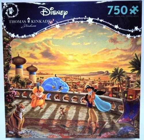 750 piece puzzle of Disney's Aladdin and Jasmine featuring Genie and Carpet.
