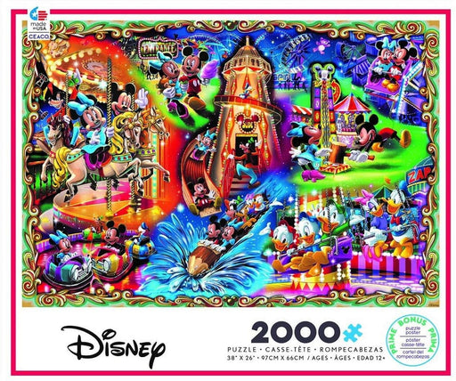 This 2000 piece Disney puzzle features Mickey and Minnie Mouse on a carnival adventure with Pluto, Donald Duck and friends. This puzzle is 38" x 26...