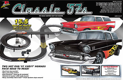 Retro racing at its finest! Two classic '57 Chevy Nomads roar through 15-1/2' of twists and turns to see who completes their laps first on this cha...