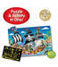 With Puzzle Doubles! Glow in the Dark- Pirate Ship puzzle, learning about life on the sea has never been so much fun! After assembling this 100-piece puzzle, turn off the lights and watch it glow in the dark! Puzzle Doubles! Glow in the Dark! Pirate Ship puzzle is a fun way to expand your knowledge or different environments. Your child will be amazed by the lively illustrations and prehistoric skeletons! This puzzle measures a giant 3’ x 2’! Ages 3+ years.