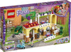 LEGO® Friends restaurant features a pizza oven, reception, balcony dining area, kitchen, WC, dumpster and outside seating area.