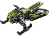 A super-cool Snowmobile for off-piste winter fun, this great model has suspension for each of the two front skis as well as a rear track to help it over any obstacle. There are also new elements, like a steering arm, steering bearings and a steering lock, and with aggressive, ripped-effect decals, this realistic 2-in-1 model would be right at home with the coolest off-road bikes and other extreme sports equipment! Rebuilds into a Snow Motorcycle.
