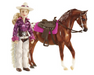 This 6" articulated Western rider comes dressed to impress in flashy Western show attire! Set also includes a Western saddle, bridle, and saddle pad which will fit a Classics horse.