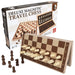 TRAVEL CHESS WITHOUT THE MESS -- This chess board set is made for travel. The foldable board fits every piece inside. And the top is magnetic so bumps and turbulence won’t ruin your game!