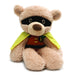 Fuzzy gender-neutral tan-colored bear with floppy arms and legs dressed up as Robin
