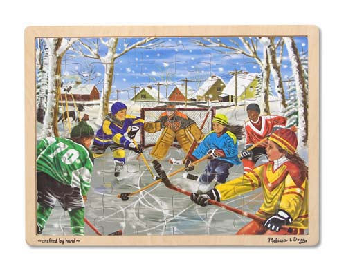 Get in the game with this action-packed 48-piece wooden jigsaw puzzle full of hockey excitement. Enjoy the challenge of assembling a thrilling scene that captures the thrill of this great winter sport! This lively puzzle comes in a sturdy, wooden tray for puzzle building and easy storage.