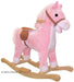 Lil' Pink Rocking Horse. Our adorable pink rocking horse plays a cute cowboy song when you squeeze her ear. 2 "AA" batteries are required; battery pack hidden in belly, secured with Velcro. Soft pink plush. Solid wooden rocker base and handles. *Maximum weight: 80 lbs *Requires 2 "AA" batteries (NOT INCLUDED) Features: Strong wooden frame with natural non-toxic finish Natural stained wooden handles Covered with a soft premium plush fabric Cleans easily with mild soap and water Plays realistic horse sounds and cowboy song Dimensions: Rocker Width: 10" Rocker Length: 25" Overall Height: 22" Seat to Floor: 15"