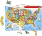 Features all of the states in the USA with the capitol cities and landmarks that make them great! 48 pieces create an awesome adventure jigsaw that’s colorful and fun to explore. The 50in x 32in magnetic wood board can be used as a floor puzzle or hung on a wall. The names of the states are on the board as well as the pieces, so children will have an easier time locating them.