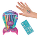 Create tantalizing sea tattoos in glittery, bright colors. Includes six assorted pens and mermaid stencil set.