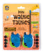 The Mini Walkie Talkies include 2 battery-powered compact walkie-talkies, each with 2 transistors, a flexible antenna, and a press-to-talk function and volume control. Each walkie-talkie stands 2.5 inches tall, is brightly colored in blue, green, and black, and can communicate up to 200 feet.