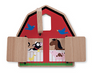 Create a story about the barn. Pretend it is morning on the farm, and you and the child are the farmers ready to start the day. Open the doors one by one to wake up the animals.