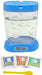 The plastic aquarium is equipped with a ventilated lid, built-in magnifiers and molded seascape bottom