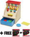 This wooden cash register adds a clever educational spin to a classic pretend-play toy! Press the number buttons to see different counting pictures, then "pay" for the purchase with numbered coins! The coins vary in diameter and thickness, so the 1 coin will only fit in the 1 slot, 2 in 2, and 3 in 3 ... all situated right above the scroll of pictures that correspond to the quantities. For extra "just like Mom and Dad" fun, kids can swipe a toy credit card too!