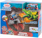 TrackMaster train set includes motorized Thomas, full track layout, tipping dragon and collapsing station with artwork featuring Yong Bao