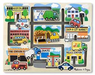 This innovative wooden puzzle includes nine colorful vehicle pieces that slide around a colorful town scene on slotted tracks. Uniquely designed sliding pieces move freely around the puzzle, but can't be removed or lost! This great activity encourages hand-eye coordination and fine motor skills.