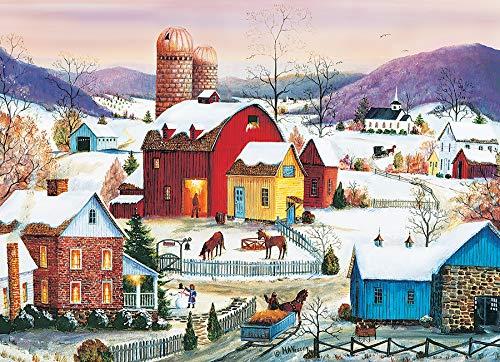 Mr. Kragelj is the first of the Winter Neighbors to pull into the peaceful town of Shenandoah. He waves to Cindy and her snowman as he rides his horse drawn sled filled with hay to the well lit barn. A nostalgic 1000 piece puzzle by artist Mary Ann Vessey.